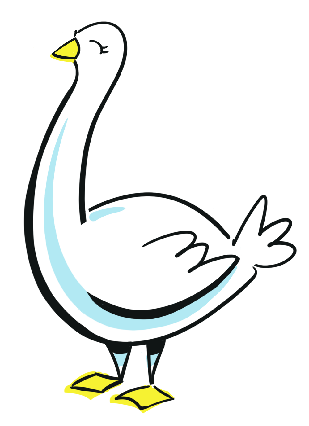 Goose used to be a snowbird, but now he lives in Florida full time. He claims he used to be a Top Gun pilot. He doesn't deliver babies, because his wings are too small, but he loves to help the ground operation.